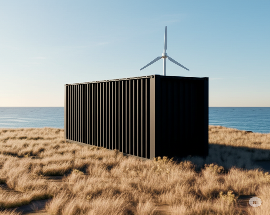 Modular 6-foot BESS container engineered for remote locations and harsh climates. Enables efficient charging of heavy-duty industrial machinery.
